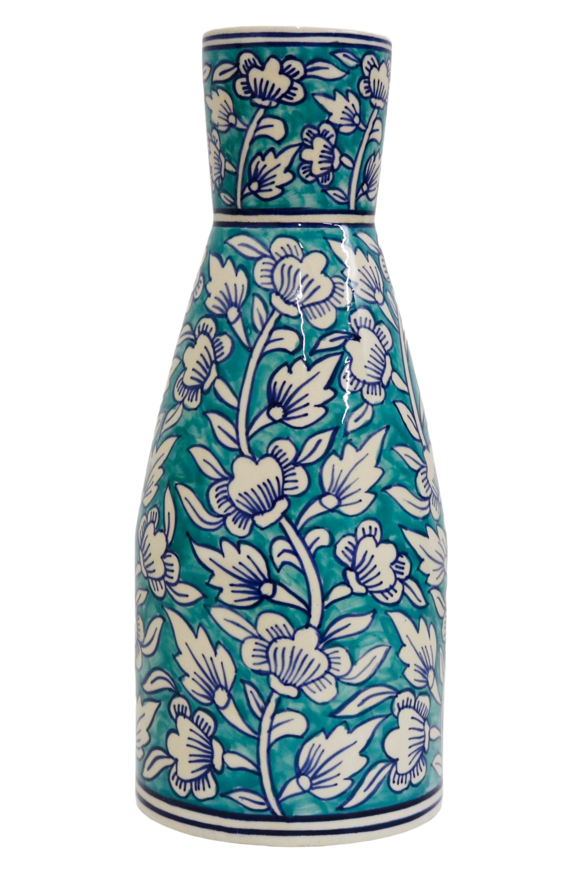 Elevate your living space with the timeless beauty of this tall ceramic vase from Home&Manor! Expertly hand-painted by skilled artisans, each piece showcases a vibrant teal background adorned with intricate white floral patterns, outlined in deep blue for a striking finish. The elegant silhouette and detailed craftsmanship make it a perfect statement piece for any room. Whether displayed on its own or styled with fresh or dried flowers, this vase effortlessly complements both modern and traditional décor. A true blend of artistry and function, it’s the perfect addition to your home décor collection.