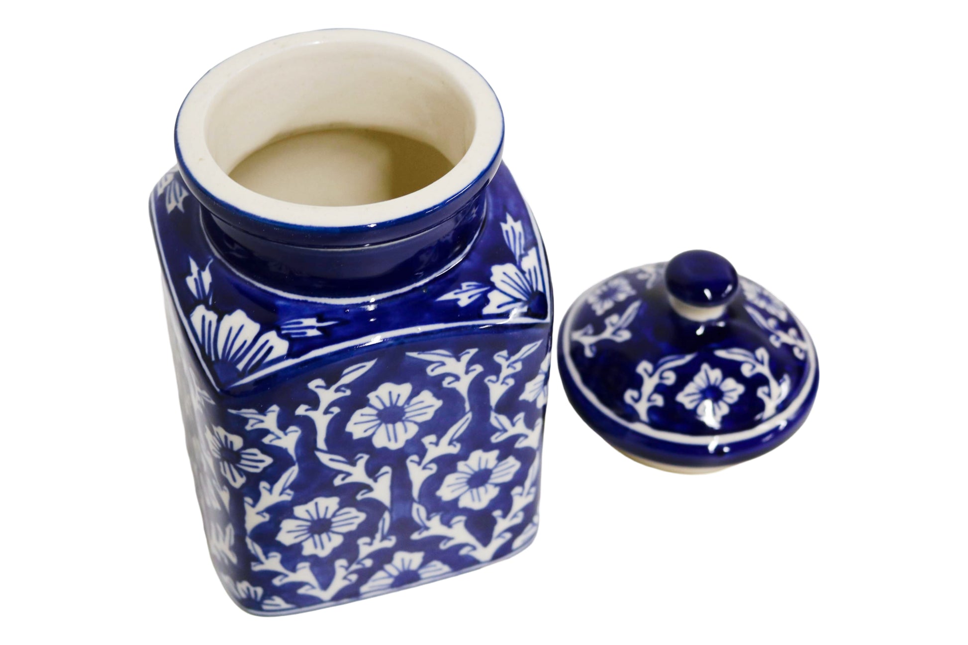 Bring charm and sophistication into your home with this ceramic jar with lid from Home&Manor! Expertly hand-painted by skilled artisans, it features a deep cobalt blue backdrop adorned with intricate white floral motifs. The clean, squared silhouette is complemented by a fitted lid, offering both decorative appeal and versatile function. Whether showcased on its own, styled with flowers, or used for storage, this vase makes a perfect addition to any home décor. Its timeless design blends seamlessly with both classic and modern interiors, making it a striking accent for living rooms, dining areas, or entryways.