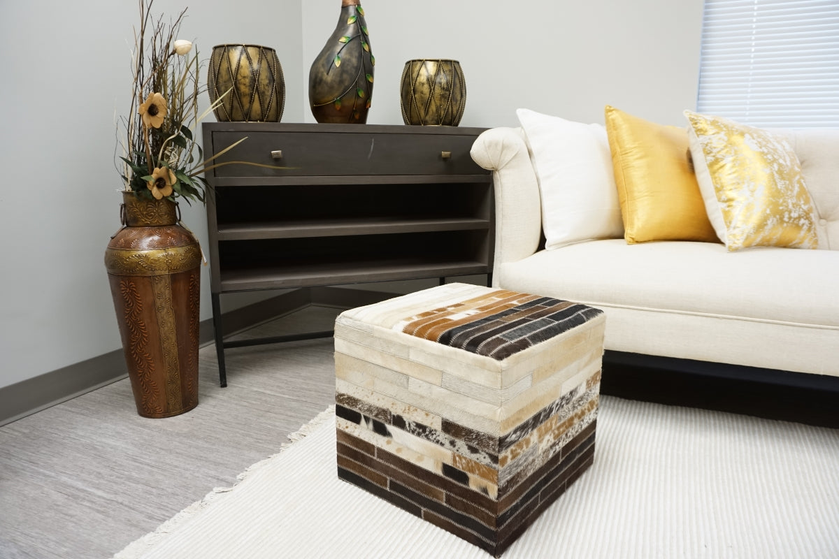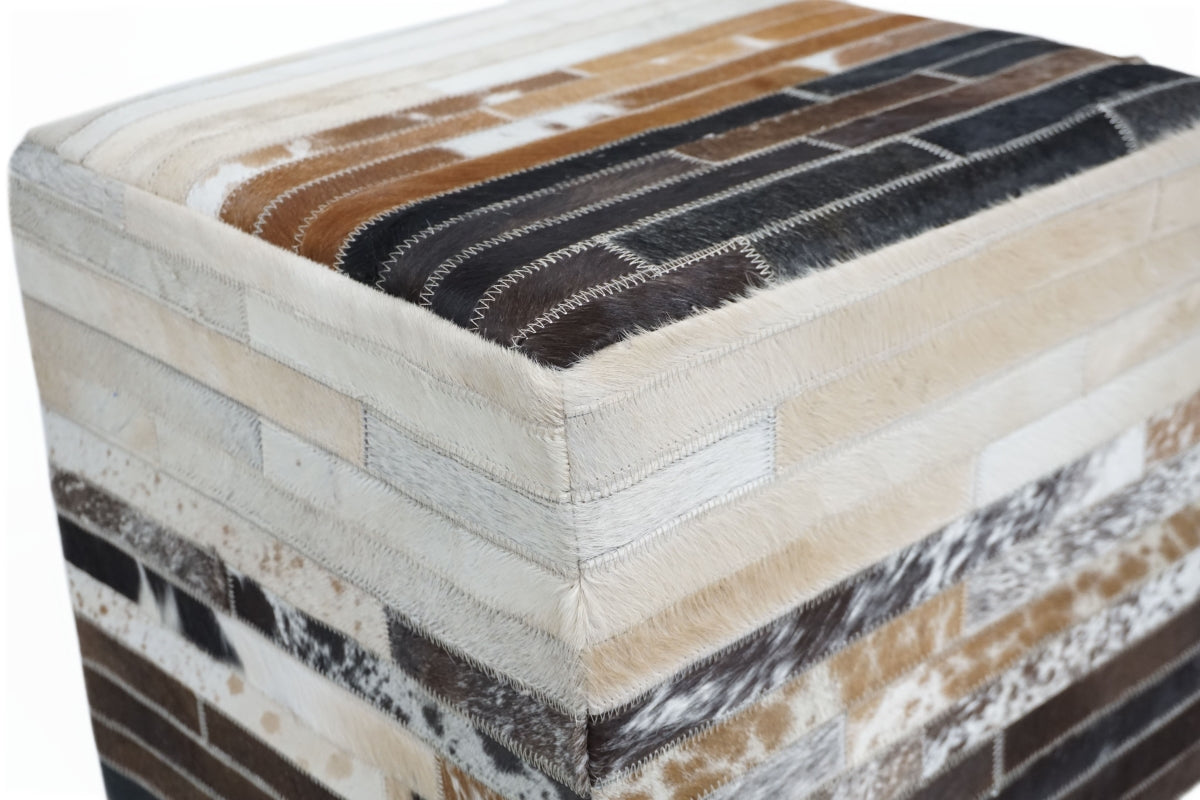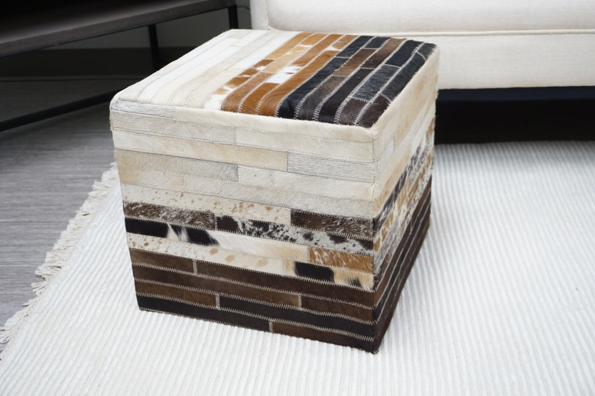 Hand crafted poufs are expertly designed and made using a centuries-old method. This pouf features are eclectic display of pattern and color, adding both visual interest and texture to your living space. The size of this pouf makes it multi purpose, use it as a foot stool, side table or quickly add a seat to your party for extra guest. It makes as a wonderful accent in modern furniture arrangement. It makes a posh art piece too with its cube silhouette wrapped with an intricate modern design.