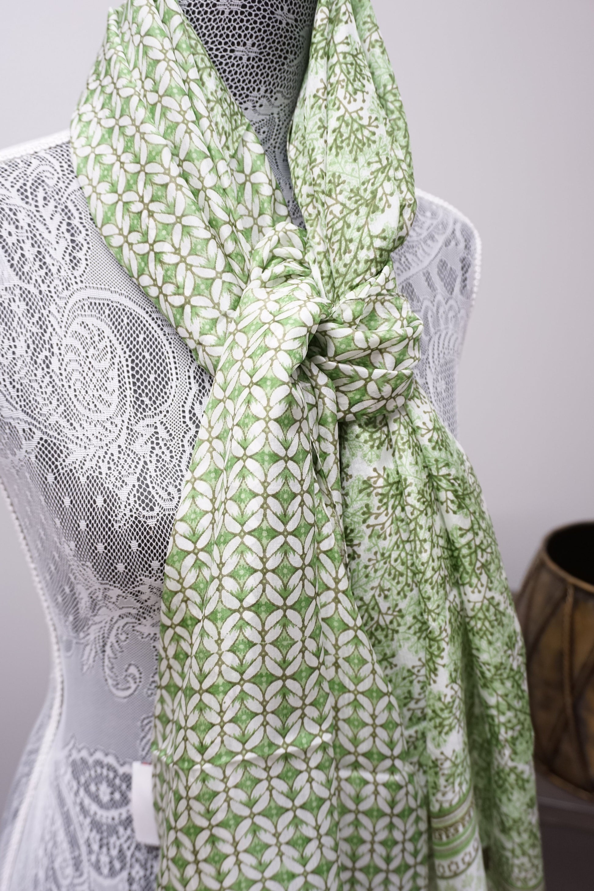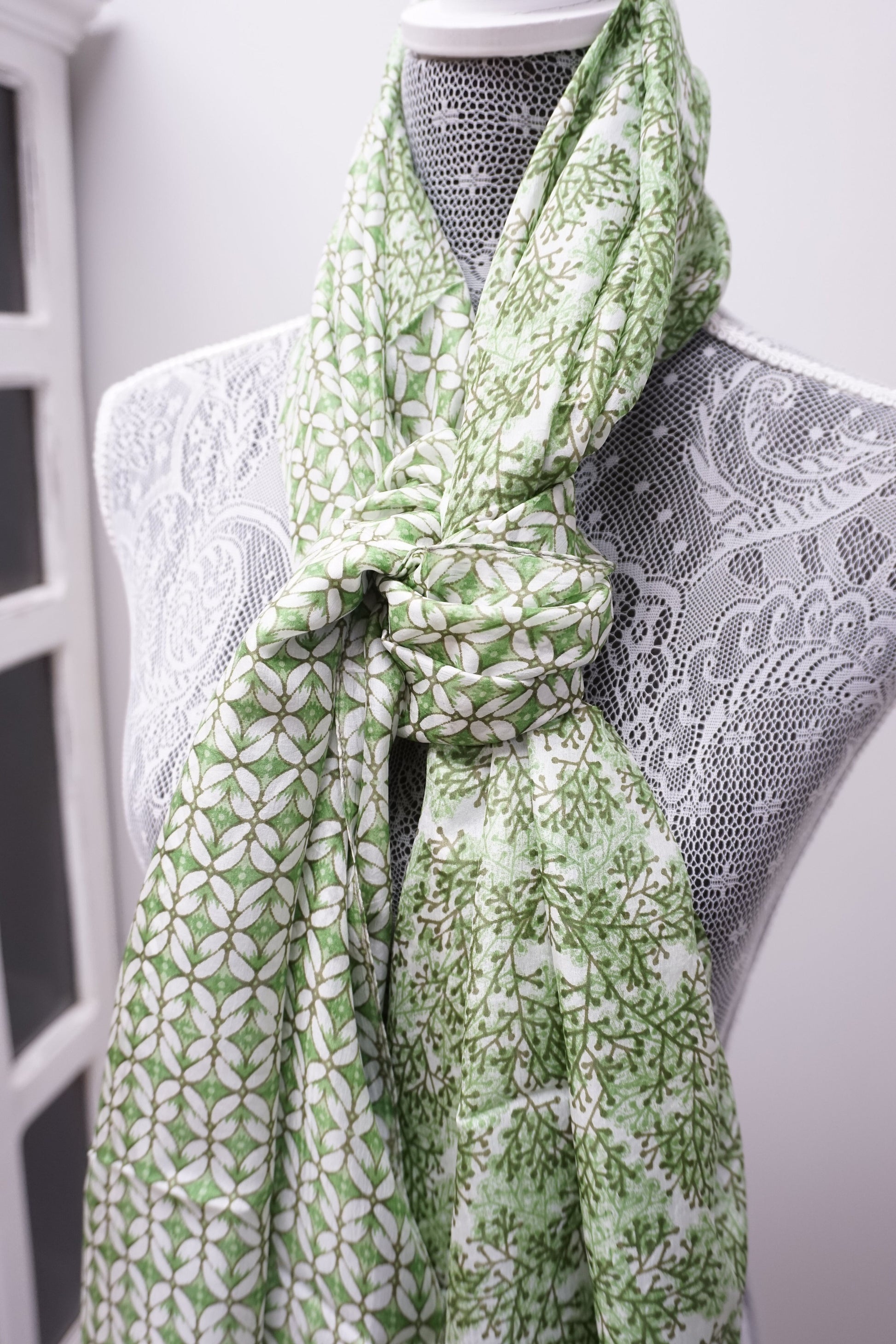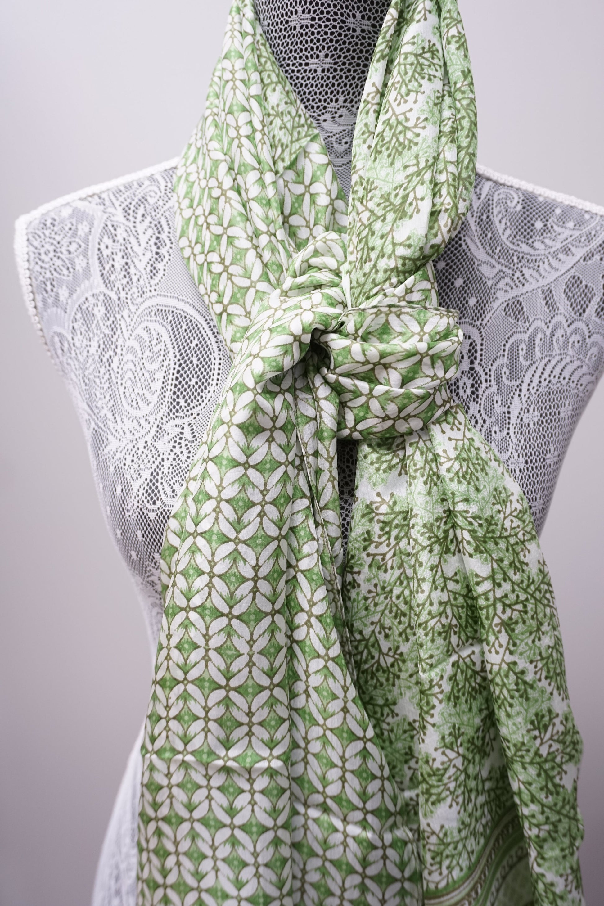 In a signature diaphanous floral print, this super soft Silk Scarf brings easy elegance to anything you wear it with. Big enough to wear as a wrap but fine enough to gather up and wear as a scarf. This tissue-weight scarf is made from a super soft silk blend in a variety of prints. One of a kind, unique individual piece.